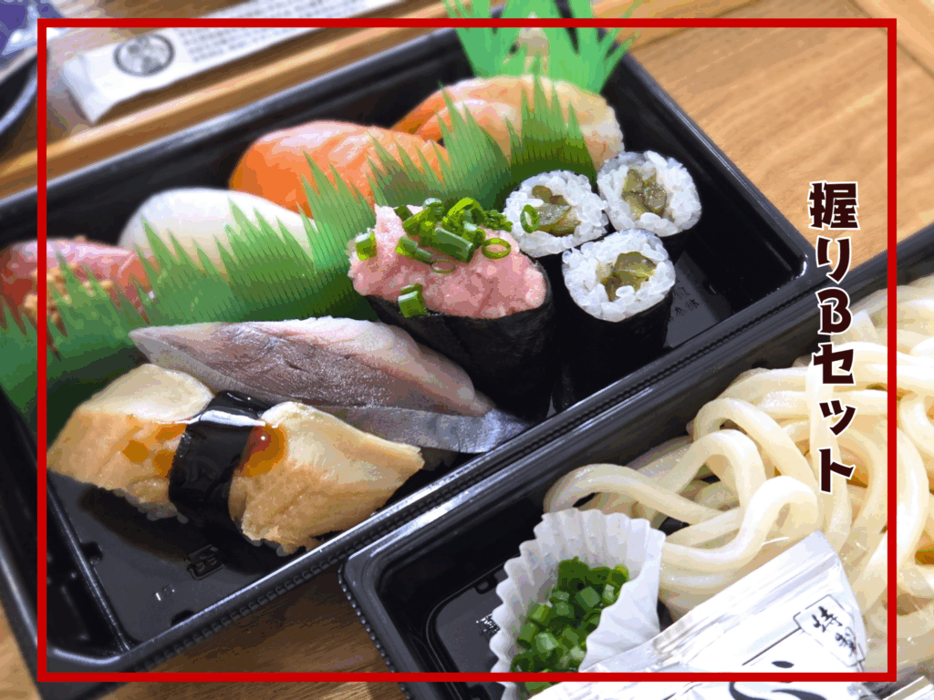 他には特選握りと少しネタが変わったサイドメニュー付である「握りセット」や
